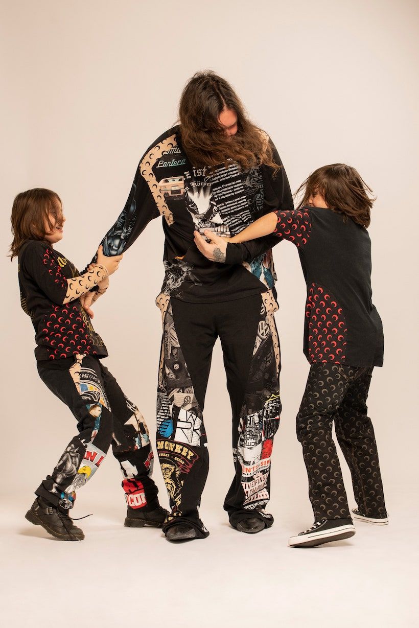 Еще одним сюрпризом стало то, что наряду с фирменным узором в виде лун (который и прославил бренд) в качестве принта Серр использовала текст гимна СССР на русском языке. Образ, выполненный в лосктуной технике, отсылает нас к рок-эстетике, которая органично переплетается с современными мотивами.