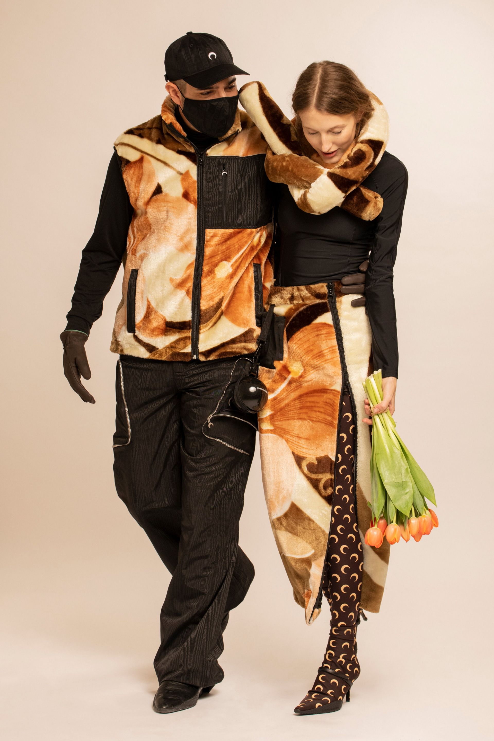 В съемках принимали участие несколько семей, среди героев оказалась модель Кристина де Конинк со своими близкими. Впрочем, на этом сюрпризы не закончились: главной идеей новой коллекции стали трансформация старых материалов и вещей и попытка придать им новую жизнь и новое прочтение. Так, старые платки из шелка стали основой для блузок и футболок, платья с открытой спиной выполнены из перешитого трикотажа, а также для создания модных образов Марин Серр использовала старые флисовые одеяла, переработанный деним и даже ковры.