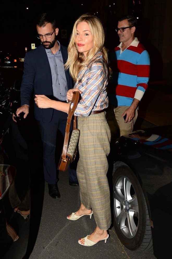 Например, Сиенна Миллер любит образы с таким типом брюк. На Неделю моды в Милане звезда надела базовые брюки-бананы, которые она дополнила атласной рубашкой с элегантным принтом. А вот в качестве обуви Сиенна предпочла надеть женственные и изящные белые мюли.